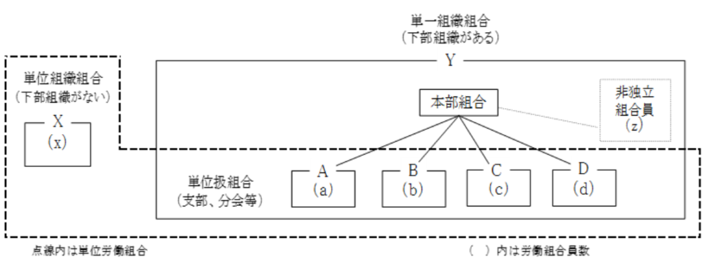 (1)単位労働組合とは、「単位組織組合」及び単一組織組合の下部組織である「単位扱組合」をいいます。